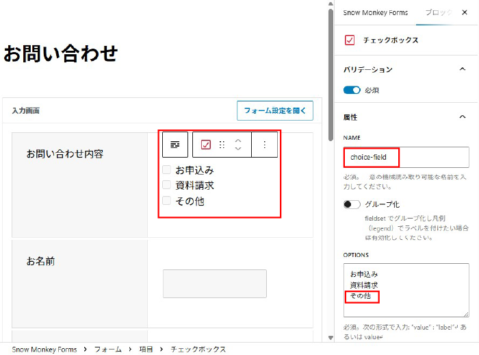 今回も「Snow Monkey Forms」のフォーム項目をカスタマイズしていきます。