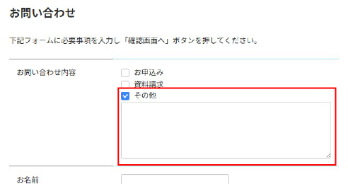 次に、「その他」を選択した場合に表示させるテキストフィールド(またはテキストエリア)を作成します。