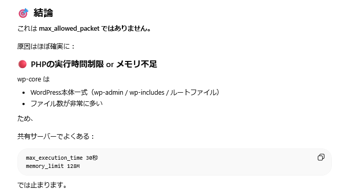 ・復元が止まったのがWordPressのコアファイルだった
